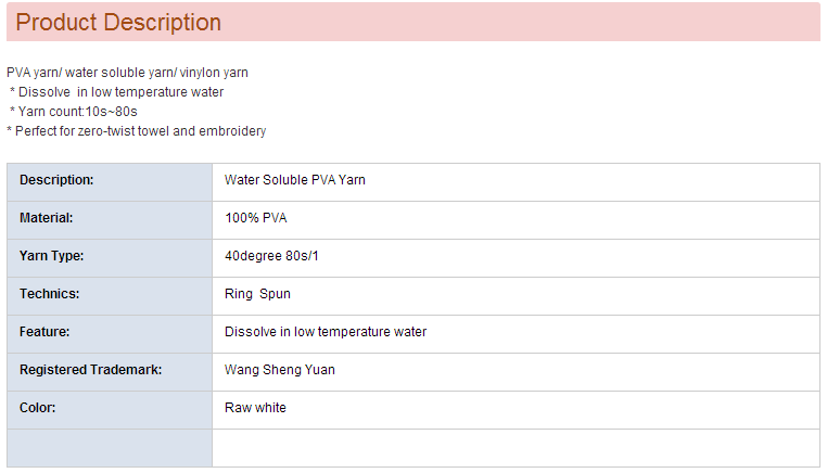 产品名称 40°Water Soluble PVA Yarn